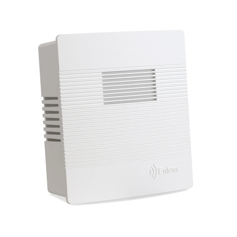 Le capteur est compatible avec les réseaux LoRaWAN (classe A) ainsi qu’avec le protocole propriétaire Enless LoRa, assurant une transmission longue portée et une excellente autonomie. Alimenté par une batterie lithium type D 3.6V remplaçable, il offre jusqu’à 5 ans d’autonomie selon la configuration. Son boîtier compact IP40 permet une installation murale discrète et rapide.